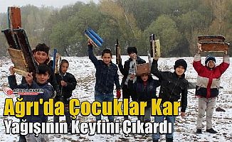 Ağrı'da Çocuklar Kar Yağışının Keyfini Çıkardı