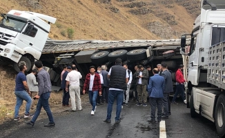 Ağrı'da tır devrildi 2 kişi yaralandı