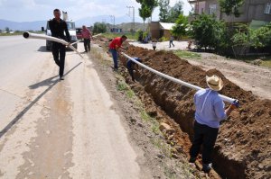 Açılan kanala yeni su hattı döşeyen ekiplerin, çalışmaların tamamlanmasıyla söz konusu bölgeye içme suyu vermeye başlayacağı belirtildi.
