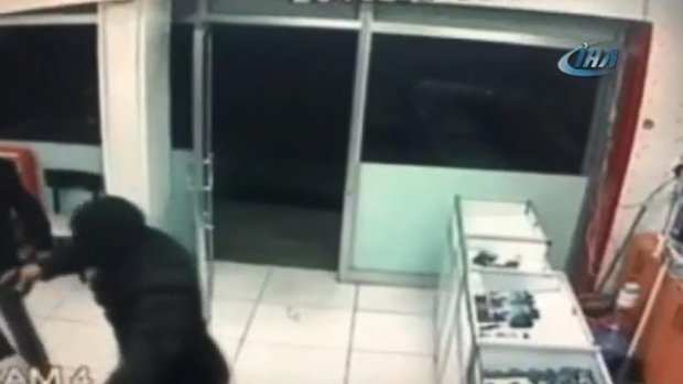 Soygunculardan biri içerideki iş yeri sahibine silah doğrulturken diğeri de cebinden çıkarttığı poşete paraları ve cep telefonlarını koymasını söyledi. Yaklaşık 2 dakika süren soygunda zanlılar 4 bin lira değerindeki 20 adet cep telefonuyla bin lira nakit para çaldı. Soygun esnasında zanlılardan biri, silahının kabzasıyla içerideki 2 müşterinin kafasına vurup yaralarken, soyguncuların çıkmasının ardından şoka giren iş yeri sahibi ise ellerini yüzüne götürerek şükretti. Kafasından darbe alan müşteriler dışarıya çıktı. Tüm bu yaşananlar güvenlik kameralarına saniye saniye yansıdı.