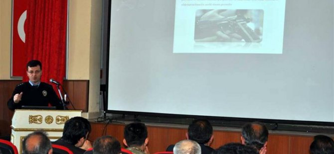 Toplantıda İlçe Emniyet Amiri Sönmez ve İlçe Jandarma Komutanı Çelik, seçim yasakları, uyulması gereken kurallar, miting alanları konularında katılımcılara sunum yaptı.