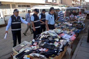 Pazar ve Bakırcılar caddesinde esnafları dolaşan zabıta ekipleri, kaldırım işgalinde bulunan esnafları eşyalarını içeri alması yönünde uyarılarda bulundu.