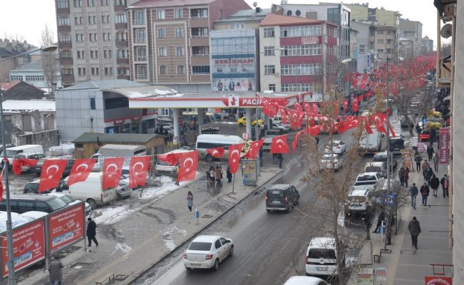 Kars Belediye Başkanlığı Zeytin Dalı Harekatı adı altında düzenlenen Afrin Operasyonu kapsamında Türk ordusuna destek vermek amacıyla kentin en işlek caddelerinden Faikbey Caddesi’ni Türk Bayraklarıyla donattı.