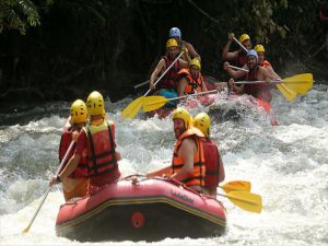 Kurban Bayramı tatilini en iyi şekilde geçirmek isteyen macera tutkunları, Cumayeri ilçesine bağlı Dokuzdeğirmen Köyündeki rafting işletmelerine akın etti.