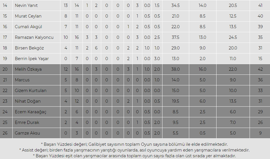 SURVİVOR PERFORMANS SIRALAMASI