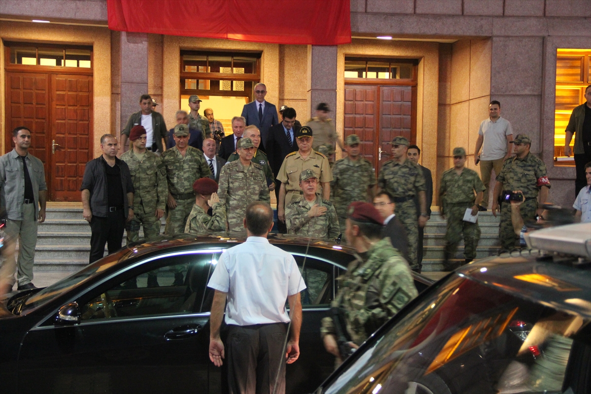 Orgeneral Akar ile Kara Kuvvetleri Komutanı Orgeneral Salih Zeki Çolak, Deniz Kuvvetleri Komutanı Oramiral Bülent Bostanoğlu, Hava Kuvvetleri Komutanı Orgeneral Abidin Ünal ve Jandarma Genel Komutanı Orgeneral Yaşar Güler, helikopterle Malatya 7. Ana Jet Üs Komutanlığı'na geldi.