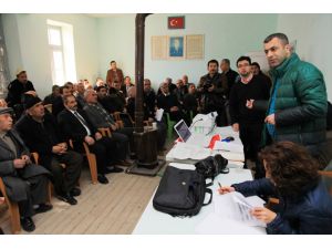 Beybağı Mahallesindeki eski okul binasında vatandaşlarla bir araya gelen özel bir firmanın yetkilileri, vatandaşlara sunumlarla yapılması planlanan alçıtaşı ocağı hakkında bilgi verdi.