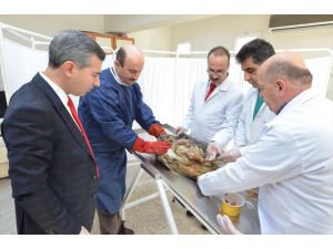 Veteriner İşler Müdürlüğünden sorumlu Başkan Yardımcısı Mehmet Çınar da yaralı puhu kuşuna uygulanan "doku nakli" operasyonunu yerinde takip ederken, yetkililerden bilgi aldı.