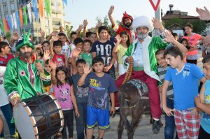 Özalper, Samanlı, Abdulgaffar ve Şeyhbayram mahallelerinden vatandaşların katıldığı iftar programı öncesi Yeşilyurt Belediyesi Tiyatro Grubuna tiyatrocuları Nasrettin Hoca ve Hacivat-Karagöz kostümleriyle mahalleleri dolaşıp vatandaşları Meydan İftarına davet etti.