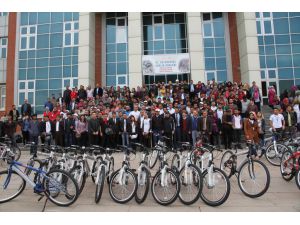 Öğrenciler, kampüste düzenlenen etkinlikte bisikletle tur attı.