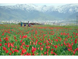 Özellikle kırsal bölgelerde doğal olarak yetişen ve ömrü sadece 15 ile 20 gün olan laleler, Muş Ovası'nı adeta kırmızıya bürüdü.