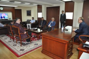 Muş Ticaret ve Sanayi Odası (TSO) Yönetim Kurulu Başkanı Fatih Cengiz ve yönetim kurulu üyeleri, Vali Seddar Yavuz'u makamında ziyaret etti.
