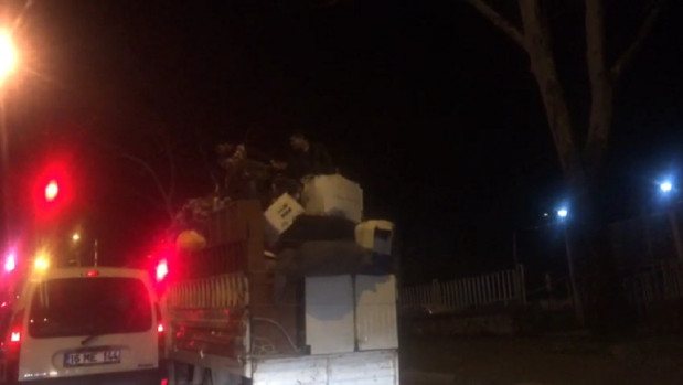 Bursa’da bir kamyona tıka basa yüklenen eşyaların üzerinde yolculuk yapan 3 kişi yürekleri ağızlara getirdi. Bursa’da ev eşyaları taşıyan kamyonun üstünde güvensiz bir şekilde yolculuk yapan 3 kişiyi görünce cep telefonu ile video çeken vatandaş, şaşkınlığını gizleyemedi. Vatandaş, "Ölümle burun buruna yolculuk" diye tepkisini gösterdi. Ev eşyalarıyla dolu olan kamyonun plakası görüntülerde belirlenemezken, ölümle burun buruna yolculuk yapan 3 kişiyi ve bir ev dolusu eşya taşıyan kamyon bir süre sonra gözden kayboldu.(Yusuf Ali Arslan/İHA)