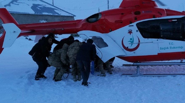 Buradaki sağlık ekibince yapılan ilk müdahalenin ardından Seven, saat 17.00 sıralarında köye gelen ambulans helikopterle Van Yüzüncü Yıl Araştırma Hastanesi'ne kaldırıldı.