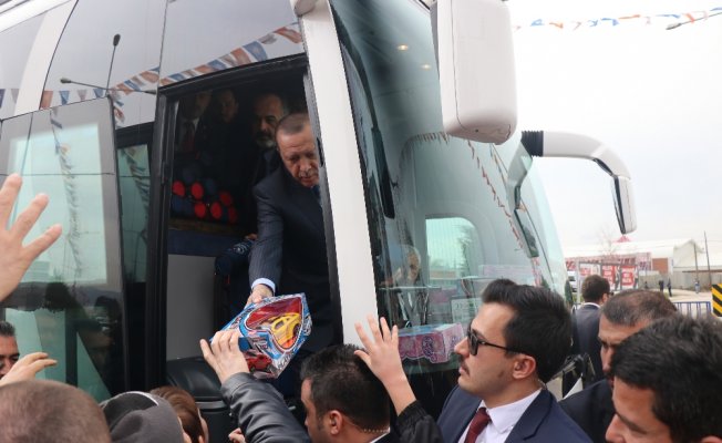 Otobüsü kontrol noktasında durduran Cumhurbaşkanı Erdoğan, kendisini karşılamak için gelen çocuklara otobüsün içerisinden satranç seti ve oyuncak dağıttı.