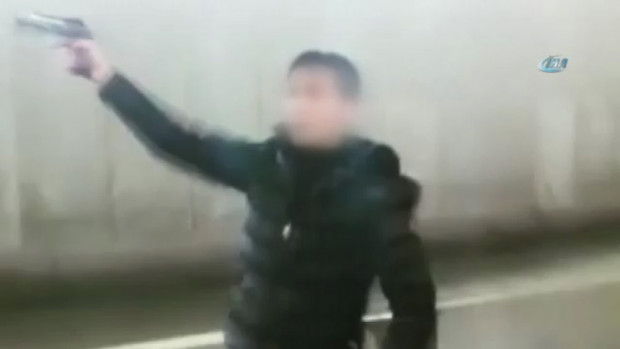 O anlar cep telefonu kamerasıyla saniye saniye kaydedildi. Görüntülere, bulvarın orta yerinde hiç kimseye aldırmadan ateş eden magandalar yansıdı.