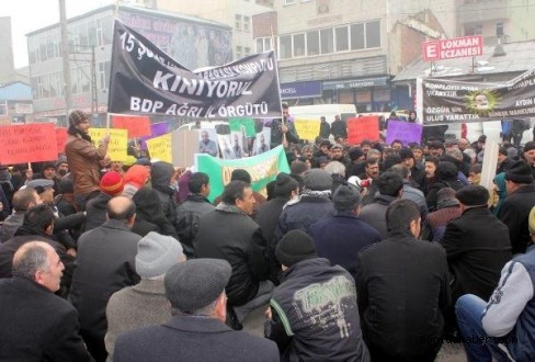ERÖR örgütü PKK'nın elebaşı Abdullah Öcalan’ın yakalanışının 15'inci yıl dönümü nedeniyle Ağrı'da yapılan yürüyüş ve basın açıklamasında, "Öcalan'a özgürlük, Kürdistan'a statü" sloganı atıldı.