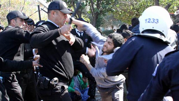 Ardından üniversitede görevli özel güvenlik görevlileri ve çevik kuvvet ekipleri eylemcilere sert müdahale etti. Biber gazı, cop ve kalkanlarla eylemcileri dağıtan polis, gruptan 15 kişiyi gözaltına aldı. Eylem esnasında bankta oturduğu sırada polisin müdahalesiyle karşılaşan bir kız öğrenci ise gözyaşlarına hakim olamadı. Gözaltına alınan öğrenciler, elleri kelepçelenerek polis araçlarına bindirilip, emniyet müdürlüğüne götürüldü.