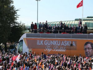 Partililer "Kıskananlar çatlasın" şeklinde sloganlar atılınca Başbakan Davutoğlu, "Kimse çatlamasın, sadece gıpta etsin. Bir milletle nasıl buluşulur onu görsün. İlk günkü aşkla haydi bismillah diyoruz" dedi. Davutoğlu, "Milletimiz ’Tek başına, iş başına’ dedi. Bugünden itibaren çalışmaya başlıyoruz. Bu meseleyi çözmek için canımızı bütün varlığımızı ortaya koyduk. Bize yorulmak, durmak yakışmaz. Biz hakkın ve halkın yolundan ayrılmadık. Yeni bir tarih yazmaya gidiyoruz. Tarihi bundan sonra biz yazacağız. Yeni bir tarih yazmaya var mısın İstanbul? Her bir ilçeye teşekkür ediyorum. Daha çok söyleyecek sözümü var" ifadelerini kullandı.