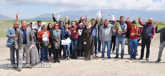 Baraj sorununu aşarak oy oranını arttırmaya yönelik HDP Doğubayazıt ilçe örgütünün çalışmaları seferberlik ruhu ile devam ediyor. Köylerde ve mahallelerde HDP ve DBP Eş Başkanları, Belediye Eş Başkanları, Belediye Eş Başkan yardımcıları, parti yöneticileri, meclis üyeleri ve HDP gönüllü çalışanları ile birlikte halka yeni yaşam bildirgesini anlatmaya devam ediyor. Anons arabaları ile mahallerde çocukların tarafından zafer işaretleri ile karşılanan araçlara ilgi göstermesi dikkat çekti. Sevinç gösterileri ile gittikleri her yerde karşılanan HDP gönüllü çalışanları ,7 Haziran seçimlerinde Doğubayazıt’ın rekor oy alacağını belirttiler.