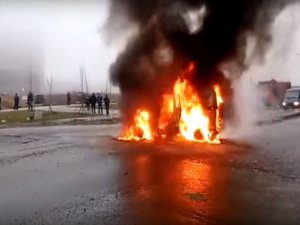 Saldırı sonrasında polis aracı alev alev yandı. Olay amatör kameraya da yansıdı.