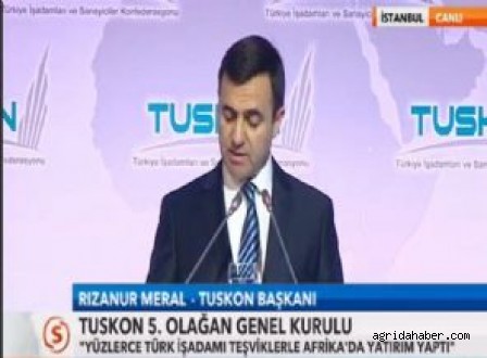 TUSKON’un son iki ayda iftiralara maruz kaldığını ifade eden Meral, şöyle devam etti: “Son günlerde medyada büyük şaşkınlık ve üzüntü ile izlediğimiz haberler, tapeler, paralel , üçgen , dikdörtgen’e bakın derken ne kadar yamuk işlerin gizlenmeye çalışıldığını, nelerin götürüldüğünü de çok net ortaya koyuyor. Geçtiğimiz 2 ayda toplumun birçok kesimi bir nevi şeytanlaştırmayı andıran siyasi söylemlerden payını aldı. Ancak Tuskon üyeleri tarihinde görülmemiş hakaretlere ve iftiralara maruz kaldı. Halbuki; bir önceki Genel Kurul Toplantımıza katılan Başbakan sizlere hitabını yine bu salonda şu sözlerle yapmıştı. Aynen okuyorum: TUSKON'a, TUSKON'un tüm mensuplarına, özellikle Türkiye'nin adını dünyaya duyurdukları, ay yıldızlı bayrağın, bu aziz milletin büyüklüğünü en uzak ülkelere, en ücra kentlere şerefle taşıdıkları için, şahsım, ülkem ve milletim adına şükranlarımı sunuyorum. TUSKON, hırsı değil kanaati, kazanmayı değil paylaşmayı, sömürmeyi değil dayanışmayı savunarak, savunduğu değerlerin samimiyetle arkasında durarak, kendisini değil, ülkesini ve milletini öne çıkararak farklılığını ortaya koydu. En önemlisi de TUSKON, sırtını belli çıkar çevrelerine, çıkar odaklarına değil, millete dayadı. Kaynağını milletten aldı, ilhamını milletten aldı, motivasyonunu, ufkunu, misyonunu milletten aldı. Nasıl ki Mevlana, bir elini göğe açıp, bir elini toprağa uzattı, 'Hak'tan aldığımı halka veriyorum' dediyse, işte TUSKON, TUSKON gibi Anadolu evlatları, Anadolu kaplanları, Hak'tan aldılar, halkla paylaştılar, birlikte büyüdüler. Nasıl ki Mevlana, 'pergel misali, bir ayağın burada merkezde olacak, bir ayağınla alemleri dolaşacaksın' diye tavsiyede bulunduysa, işte Anadolu'nun aslanları da, güçlerini Anadolu topraklarından aldılar, tüm dünyayı deveran ettiler’.