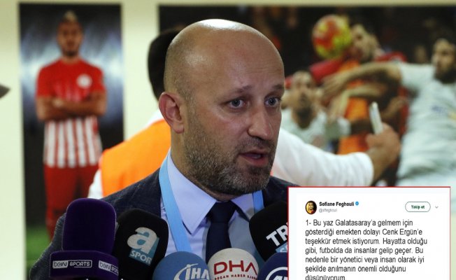 Galatasaray’ın sezon başında West Ham United’dan kadrosuna kattığı yıldız futbolcu Sofiane Feghouli Cenk Ergün’e veda etti. Başarılı oyuncu sosyal medya hesabından yaptığı açıklama ile Galatasaray Futbol Direktörlüğü görevine son verilerek kulüp ile ilişkisi kesilen Cenk Ergün’e veda mesajı gönderdi. Feghouli, sosyal medya hesabından paylaştığı mesajında, "Bu yaz Galatasaray’a gelmem için gösterdiği emekten dolayı Cenk Ergün’e teşekkür etmek istiyorum. Hayatta olduğu gibi, futbolda da insanlar gelip geçer. Bu nedenle bir yönetici veya insan olarak iyi şekilde anılmanın önemli olduğunu düşünüyorum. Senin bunu en iyi şekilde başardığını bilmeni istiyorum. Seni tebrik ediyor ve gelecekteki işlerin için başarılar diliyorum" ifadelerine yer verdi.