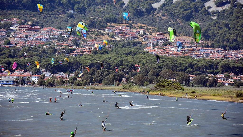 Birinci derece sit alanındaki 3 bin 500 metrelik sahilin sörf alanı olarak tescillenmesinin ardından uçurtma sörfü alanının bulunduğu bölge, sporcuların gün boyu yaptığı akrobasi hareketleriyle de ziyaretçilerin ilgisini çekiyor.