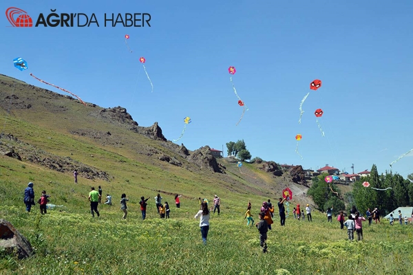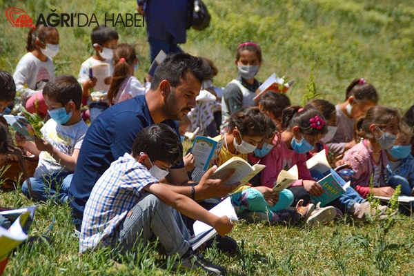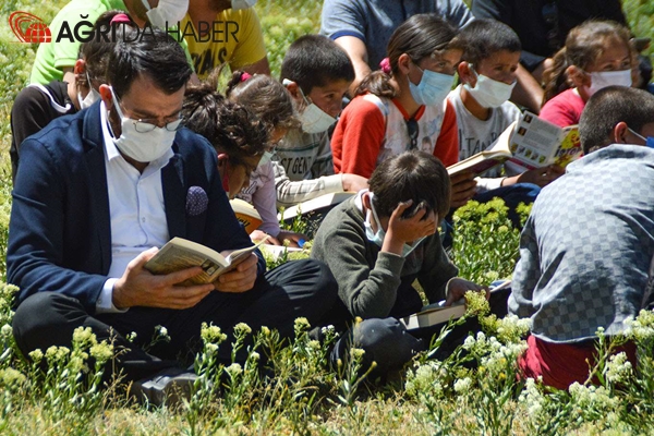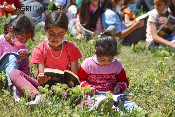 Ağrı'nın Taşlıçay ilçesinde düzenlenen etkinlikte öğrenciler doğada kitap okuyup ardından uçurtma uçurarak eğlendiler.