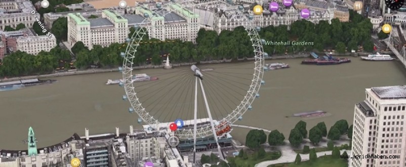Kuş bakışı olarak üç boyutlu görülebilen Apple Haritalar’a gelen güncellemeyle birlikte İngiltere’deki London Eye ve Big Ben saat kulesine bazı animasyonlar eklendi. iOS'li bir cihazınız varsa Apple Haritalar uygulamasını uydu görünümü seçeneğiyle açarak London Eye ve Big Ben saat kulesinin hareket ettiğini göreceksiniz.