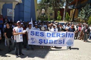 Sağlık ve Sosyal Hizmet Emekçileri Sendikası (SES) Tunceli Şubesi üyeleri, Moğultay Mahallesi Sanat Sokağı'nda bir araya geldi. Grup buradan Cengiz Topel Caddesi üzerindeki İl Sağlık Müdürlüğü önüne yürüdü.