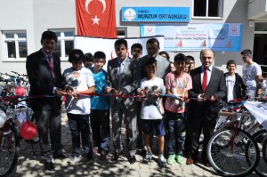 Sağlık Bakanlığınca başlatılan "Türkiye Sağlıklı Beslenme ve Hareketli Hayat Programı" kapsamında ile gönderilen 50 bisikletin dağıtımı Munzur Ortaokulu'nda yapıldı.