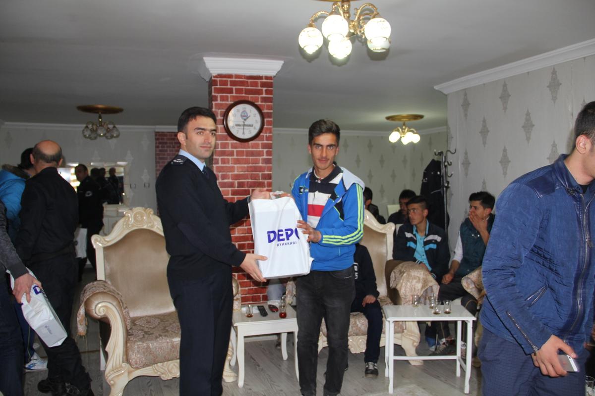 Sporculara hediyeleri, İlçe Emniyet Müdürü Sedat Haşimoğlu ve polisler tarafından verildi.