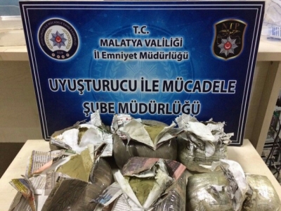 Malatya'nın merkez Battalgazi ilçesinde, arazide 73 kilo 400 gram esrar ele geçirildi.