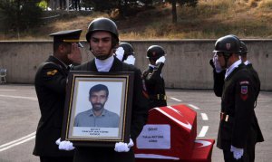 ERZURUM - Erzurum'un Şenkaya ilçesinde terör örgütü PKK mensuplarıyla çıkan çatışmada ağır yaralanan ve kaldırıldığı hastanede şehit düşen köy korucusu Yakup Aktürk için tören düzenlendi.