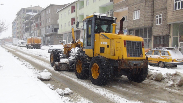 Şemdinli ilçesinde kar temizleme çalışması sürüyor.