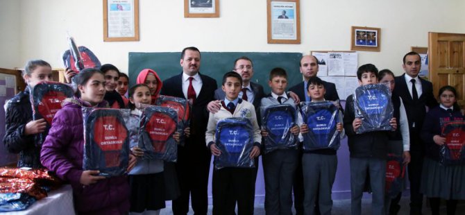 Bir öğretmen nezaretinde Erzurum'a ulaştırılan hediyeler, Dumlu Ortaokulunda eğitim gören 192 öğrenciye dağıtıldı.