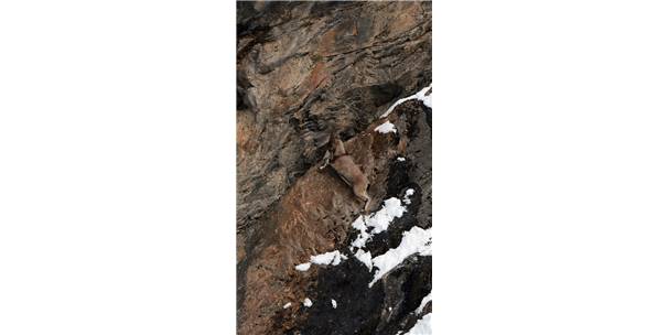 Nesli tükenme tehlikesiyle karşı karşıya olduğu için koruma altına alınan dağ keçileri, Tunceli'nin Munzur Vadisi'nde yiyecek ararken görüntülendi.