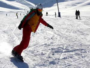 Her yıl binlerce kayakseveri ağırlayan merkeze gelenler, Van Gölü manzarasıyla gönüllerince eğlendi.