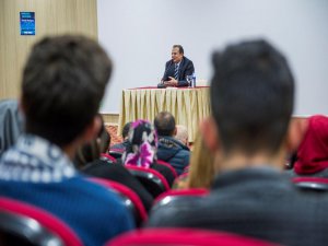 İİBF Konferans Salonu'nda gerçekleştirilen söyleşi, Vali Taşyapan'ın özgeçmişinin okunmasıyla başladı.