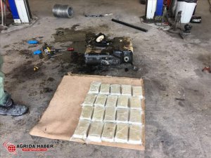Narkotik köpeği "Şila"nın da kullanıldığı aramada, aracın yakıt deposuna gizlenmiş 20 paket halinde 10 kilo 980 gram eroin bulundu.