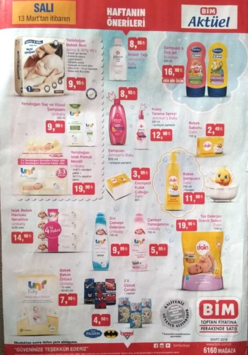 9 Mart Bim aktüel kataloğunda; 2 yıl garantili, bebeğinizin oda şartlarını kolaylıkla öğrenebileceğiniz, takvimli dijital saat ve erteleme fonksiyonlu alarm özelliklerine sahip Oriban Isı ve Nem Ölçer 19,90 TL. Bebeğinizi odasını ve evinizi istediğiniz yerden internet kullanarak izlemek ister misiniz? Eğer cevabınız evet ise tam size göre bir ürün var. Hareket sensörüne sahip, gece görüş özellikli, mobil uygulamalar ile kolay kurulum sayesinde kullanılabilen, 64GB kadar hafıza desteği, 2 yıl garantili ve 6 taksit imkanı ile satışa sunulan İp Kamera 99 TL. Bebek Pike 11,90 TL. Bebek Puf Yelek 12,50 TL. Bebe baskı desenli ve tamamen pamuktan imal edilmiş Empirme Bebek Battaniyesi 11,95 TL. Bebek Nevresim Takımı 24,95 TL. 2’li Lisanslı Bebek Body 9,90 TL. Lisanslı 2’li Bebek Yelek 12,50 TL. Biberon Seti 13,90 TL. 3 yaş ve üzeri çocukların kullanımına uygun olarak tasarlanmış, pil ile çalışan Oyuncak Dikiş Makinesi ve Ütü 39 TL. Bimde bu hafta geçerli olacak 9 Mart 2018 Bim aktüel kataloğunda bebek ürünleri bitmiyor. Farklı renklerde Bebek Bakım Çantası 12,50 TL. Silikon elyaftan üretilmiş yastık içine sahip Bebek Alt Açma Seti 10,95 TL. Meyvelerin vitaminlerini kaybetmeden rendelemenize imkan sağlayan Cam Rende 3,95 TL. Çocuklarınızı evdeki tehlikelere karşı korumak için kullanabileceğiniz Kapı Stoperi, Dolap Kilidi, Priz Kapağı, Çekmece Kilidi, Köşe Koruyucu gibi ürünlerin her biri 3,90 TL.