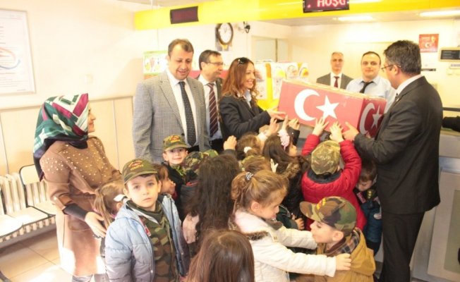 15 Temmuz Anaokulu öğrencilerinin kargolarını teslim anında PTT Başmüdürü Mehmet Örsdemir öğrencilere çeşitli hediyeler vererek, onların askerlerimize gönderdikleri hediyeleri de yerlerine en kısa sürede ulaştırarak Kahraman Mehmetçiklerimizin moral ve motivasyonuna katkıda bulunacaklarını söyledi.